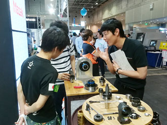 今回はヤマザキマザック様、住友電気工業様との3社コラボレーションによる高効率加工のご提案企画として、 機械加工、焼ばめホルダ スリムラインの精度測定、アングルヘッドハーフの組立デモンストレーションを行い 大盛況にて終了いたしました。