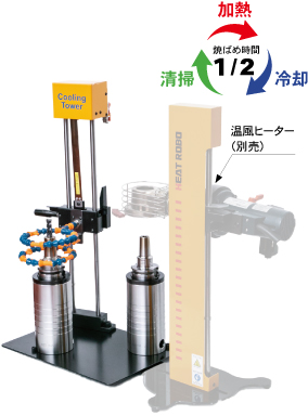 加熱と冷却を分けて行うことで焼ばめ時間を1/2に短縮します。