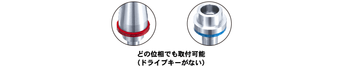 また、ドライブキーがないため、どの位相でも取り付けできるので振れの測定が簡単です。