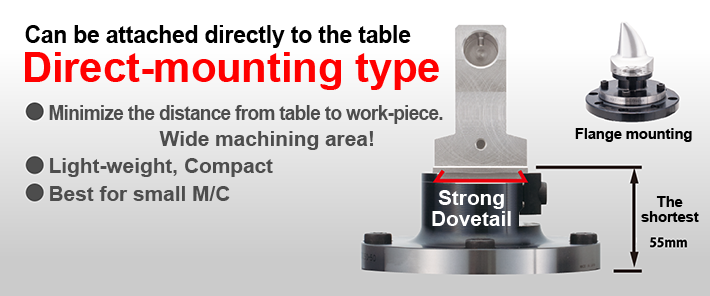 It clamps a work-piece with the shortest length thanks to direct mounting on the table, and provides a larger machining center machining area.