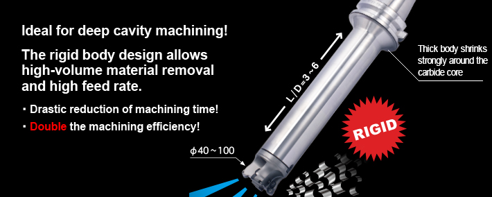 The large-diameter carbide core is integrated into the thick body by shrink-fitting.