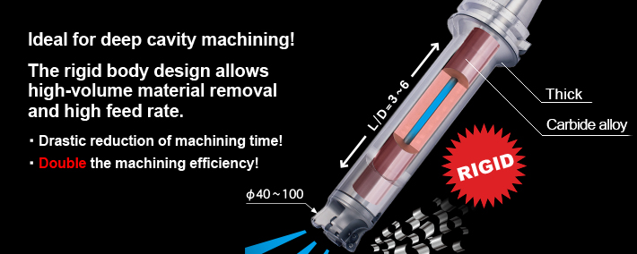 Achieves less deflection and higher efficiency during long-gauge machining.