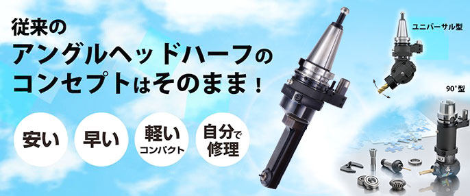 The number of parts (22 pcs.) is half that of conventional angle heads. No need for fine matching and adjustment.
