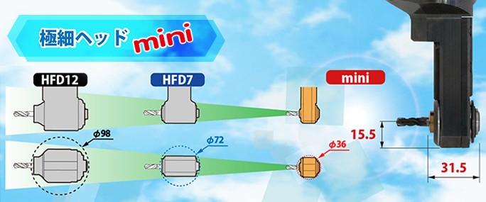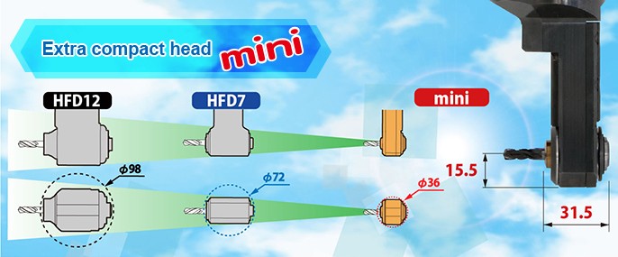 New extra-compact head HALF mini version provides the rigidity and accuracy needed for drilling and tapping!