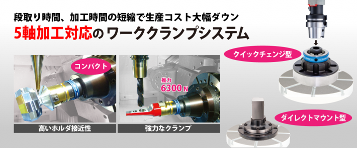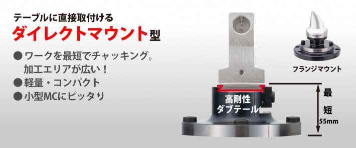 ワークホルダを直接テーブルに取付ける事で、ワークを最短寸法でチャッキングできます。