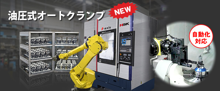 油圧クランプ式のオートヘッドにより、加工機とロボットを組合せた自動化システムが構築できます。