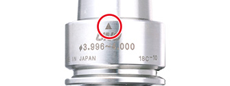 UNOのフランジ部に使用できる工具シャンク径をマーキングしています。H5/h6のシャンクの工具をご使用の場合は、寸法を測定し、マーキングの寸法内であればご使用いただけます。