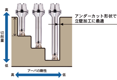 突出しの長い加工でもたわみが少なく高能率加工を実現。