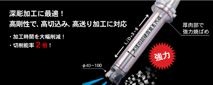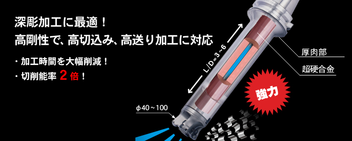 L / D = 3 〜 6で切削能率 2倍 (従来比)